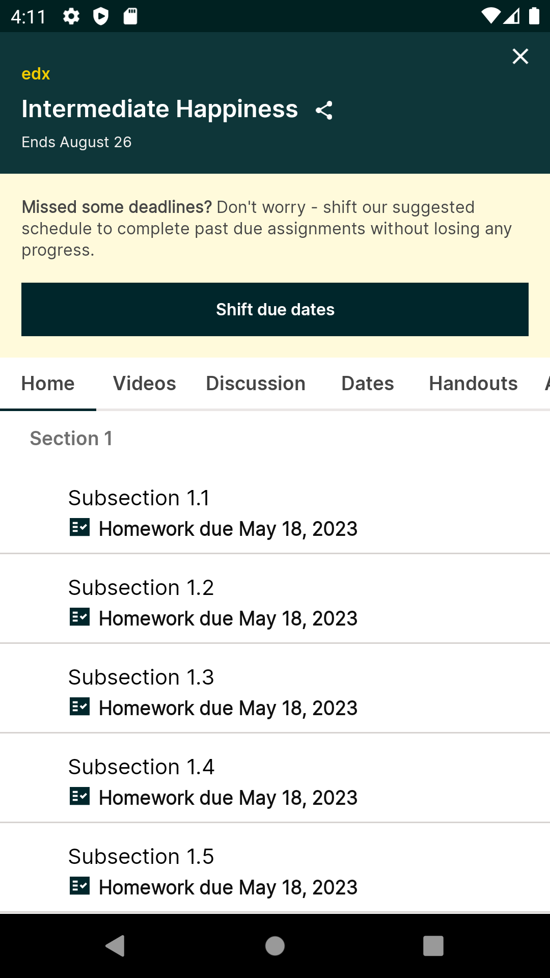Learners will see a course dates shift banner in the course header when the server returns that dates needs shifting, similar to behavior in the web browser.