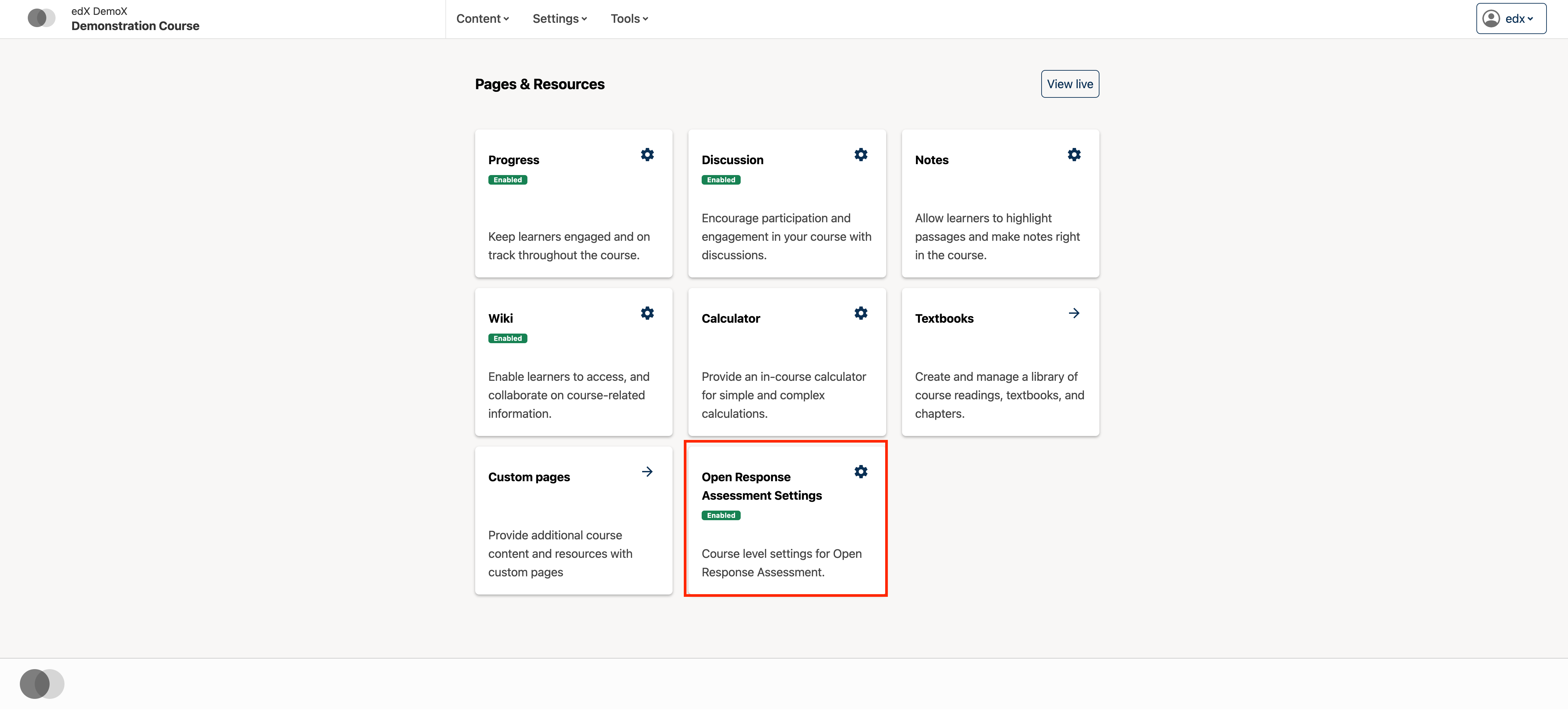 For step-by-step instructions for creating an open response assessment, see Create an Open Response Assessment Assignment.
