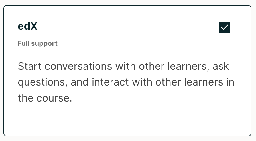 4. Select Open edX as the discussion provider by checking the box on the top-right of Open edX tile. Click Next.