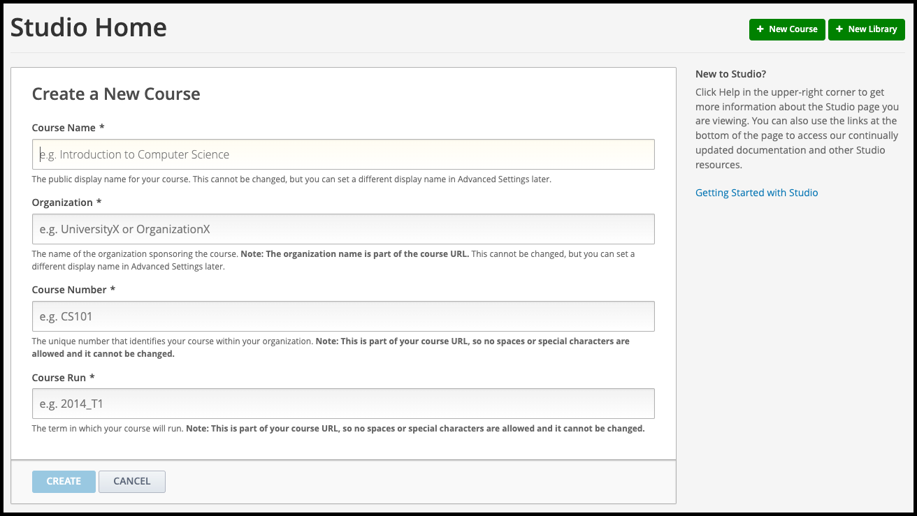 Create a New Course in Studio (how-to)