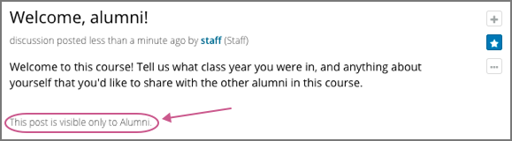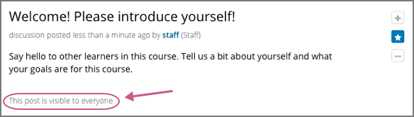 Every post includes a sentence that identifies whether everyone can see and contribute to it, or only the members of a group in the course. Examples follow.