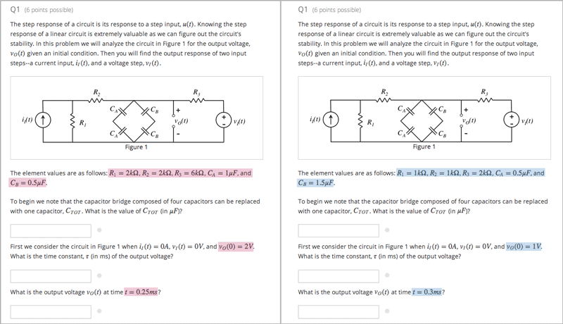 For example, in this problem, the highlighted values change each time a learner submits an answer to the problem.